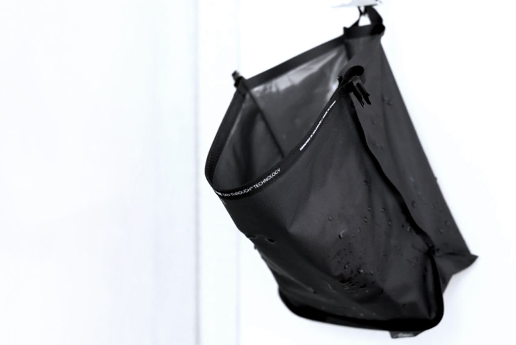 Wasserdichte Materialien, verschweißte Konstruktion und ein Rolltop-Verschluss sorgen dafür, dass nichts ausläuft und der Inhalt trocken bleibt.