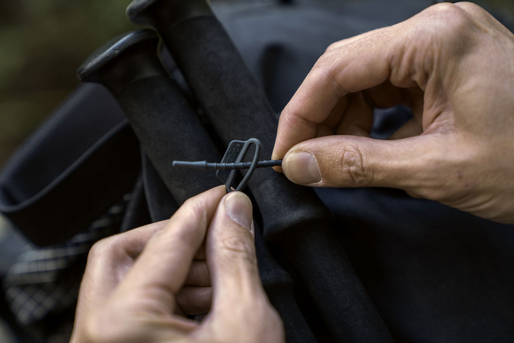 Re-Tie sind wiederverwendbare Kabelbinder aus Gummi zum Bündeln loser Gegenstände, Befestigen von Ausrüstung an Rucksäcken und mehr.