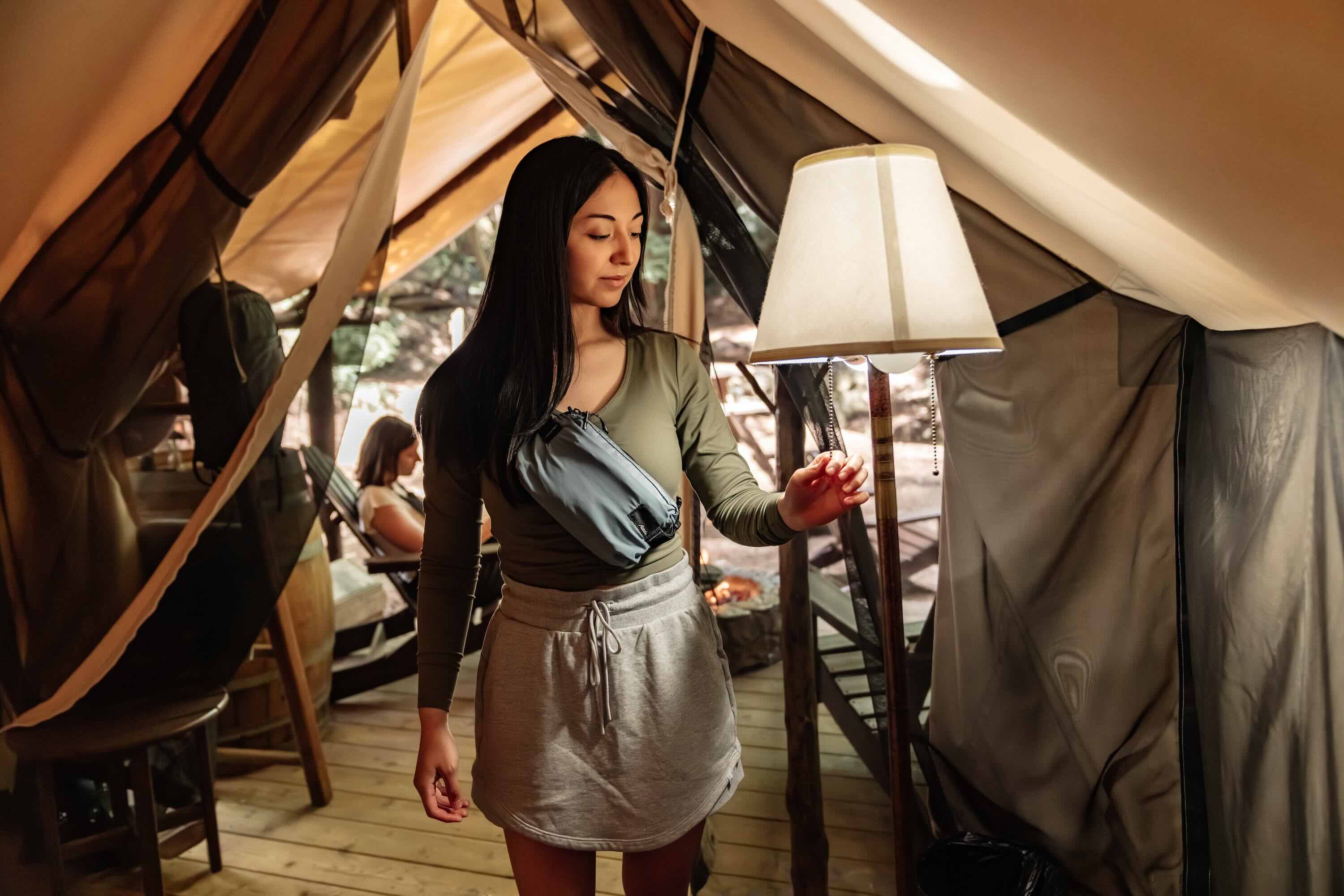 Verstaue die Hüfttasche in seinem eigenen integrierten Etui für unterwegs.
