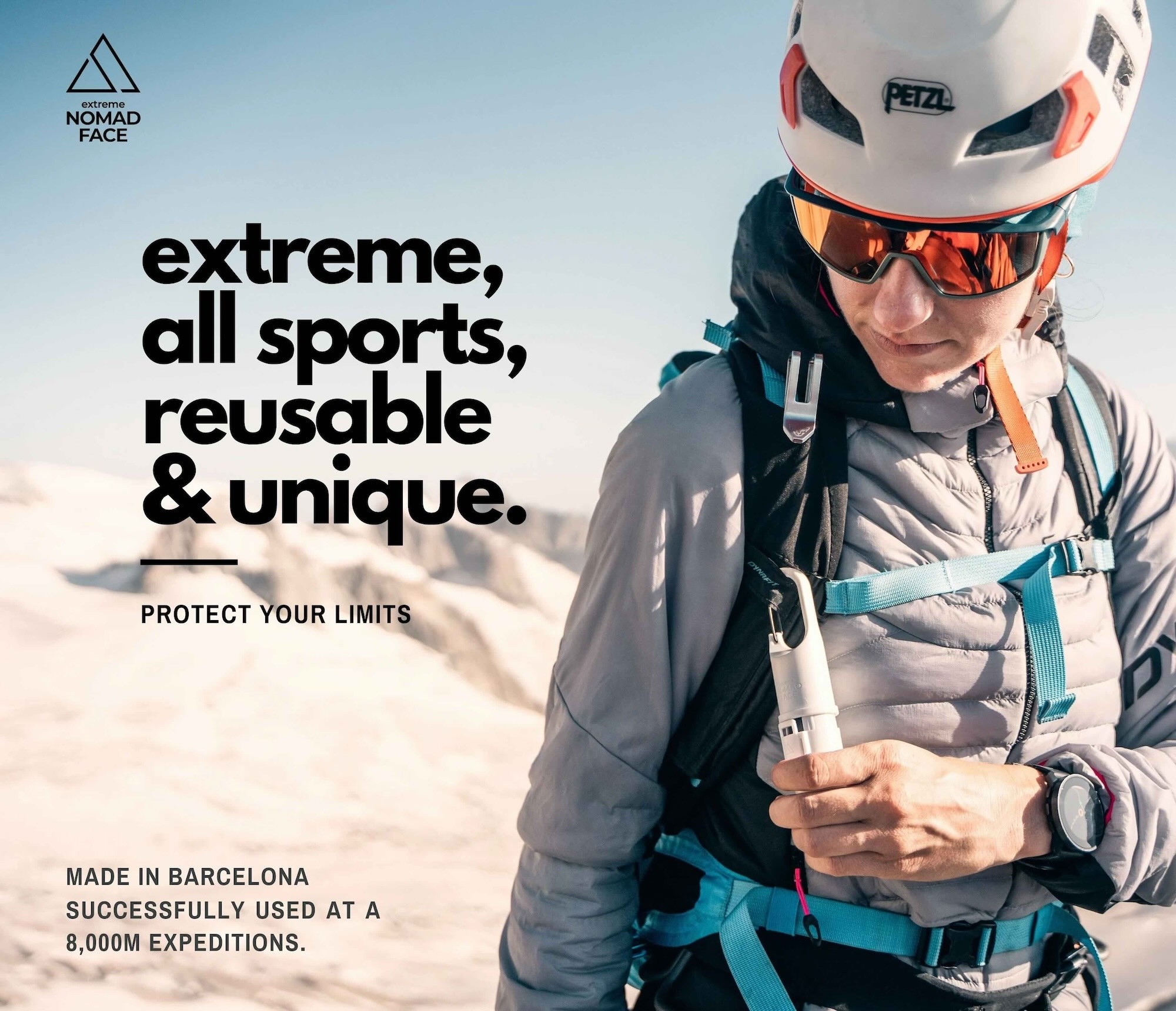 Nomad Face ist der beste Sonnenschutz für Sportler. Für Hochgebirge, Skifahren, Klettern, Alpin oder jede andere Outdoor-Sportart. Selbst wenn Sie Handschuhe tragen, brauchen Sie nur 1 Hand und 5 Sekunden, um sich zu schützen und Ihren Weg fortzusetzen. Unter Extrembedingungen getestet bis zu 8035 HöhenmeterSchützt Sie vor allen UV-Strahlen. Beständig von -40 °C bis +60 °C. Die beste SPF-Creme für Profisportler.