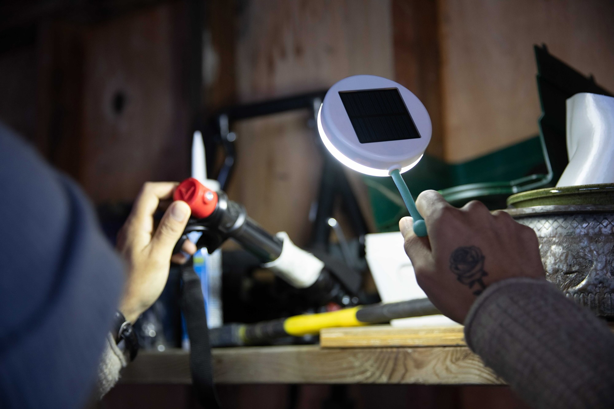 Worklight, emergency light, overhead light, Solar Flexlight does it all. With its adjustable 35cm silicone arm, and 3 cool white LEDs shining through a matte finish, you can direct light however you choose for up to 12 hours on a single charge. Whether you set it up as a lamp, hang it from above, or attach it to your belt, Flexlight has you covered.